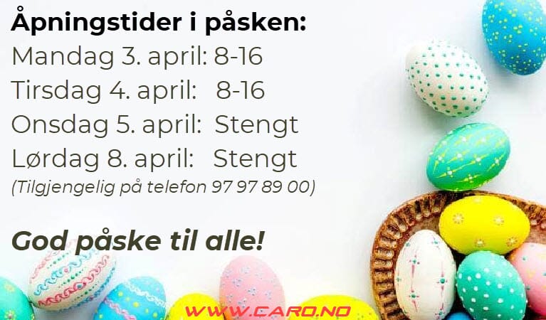 Vedlagt er åpningstider for påsken 2023.