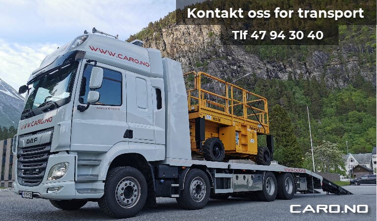 Transport Vi har varebiler og lastebil for transport av maskiner og utstyr både lokalt og ellers i Norge. Kontakt oss på tlf 47 94 30 40 eller post@caro.no for tilbud.