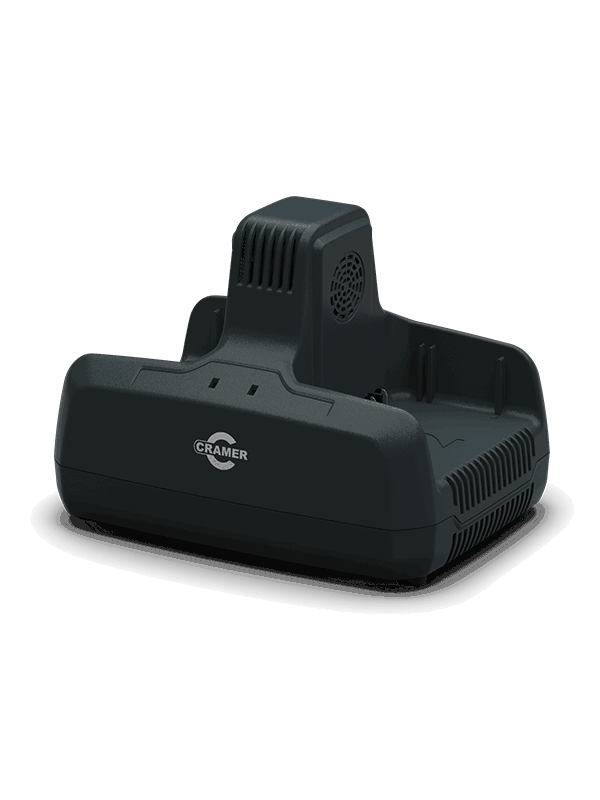 Lader med 2 ladeporter. Lader batteriene etter hverandre til de er fullt oppladet. Batteriene kan lades umiddelbart etter bruk, da den innebygde viften gir kjøling under ladeprosessen. Dette sparer deg for verdifull tid. Passer til samtlige 82V-batterier fra Cramer.